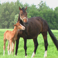 Jument de dressage Rheinland née en 2000, poulinière et mère de Bjarkan. Très tôt dans sa vie de cheval, Wolk a manifesté le désir de devenir mère et d’éduquer des poulains en éveillant leur conscience. Elle remplit d’ailleurs ce rôle de mère universelle envers les chevaux et les humains qui croisent son chemin, avec toute la sagesse et l’amour inconditionnel qui la caractérisent.