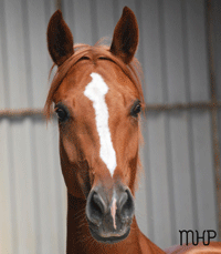 Jument hanovrienne née en 2005, cheval de dressage. Devenue progressivement aveugle à la suite d’une maladie dégénérative, Esther a particulièrement développé ses sens subtils et travaillé sur l’acceptation et l’incarnation. C’est cette force de vie et cette qualité de ressenti qu’elle a souhaité mettre au service des humains et des chevaux.